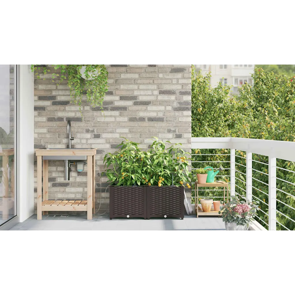 Need pruunid terasest aia istutuskastid loovad praktilise ja esteetilise lahenduse taimede kasvatamiseks aias või terrassil. Komplektis on kaks istutuskasti mõõtmetega 80 x 40 x 37,5 cm, mis pakuvad rohkelt ruumi köögiviljadele, maitsetaimedele ja ilutaimedele. Integreeritud kastmissüsteemiga konstruktsioon aitab hoida mullaniiskuse ühtlasena ning lihtsustab regulaarset hooldust, mistõttu sobib see nii algajale kui kogenud aednikule.