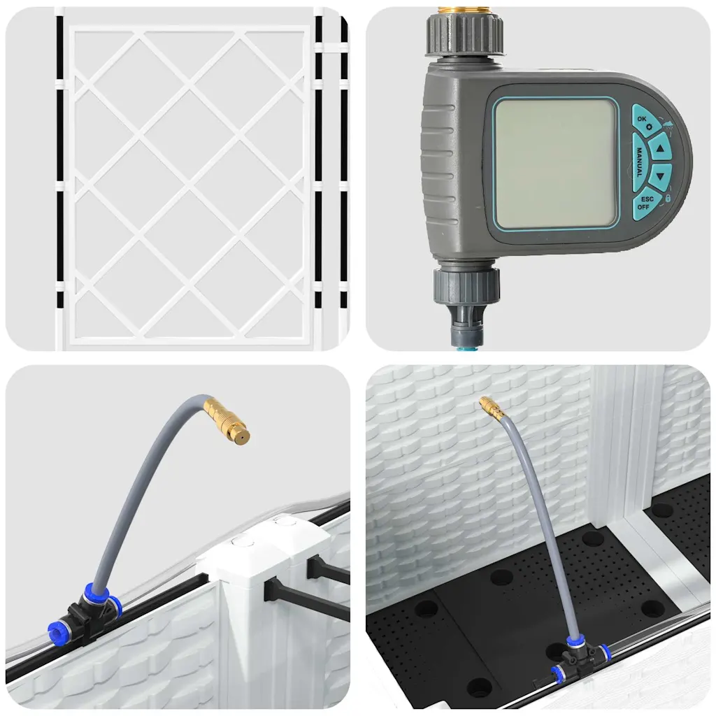 Kui soovid aeda või terrassi korrastada nii, et taimed oleksid koondatud tugevatesse ja ilmastikukindlatesse lahendustesse, on see valgest terasest istutuskastide komplekt praktiline valik. Kolm omavahel sobivat moodulit ja kaasas olev kastmissüsteem aitavad luua hästi hooldatud istutusala, mis sobib nii köögiviljadele, maitsetaimedele kui ka dekoratiivtaimedele.