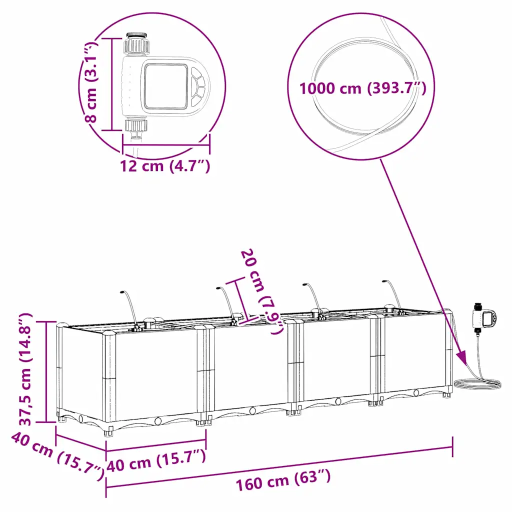 - Mõõdud 160 x 40 x 37,5 cm (P x L x K) – pakub rohkelt ruumi nii madalatele kui ka veidi kõrgematele taimedele, sobides hästi kitsamatele aladele.