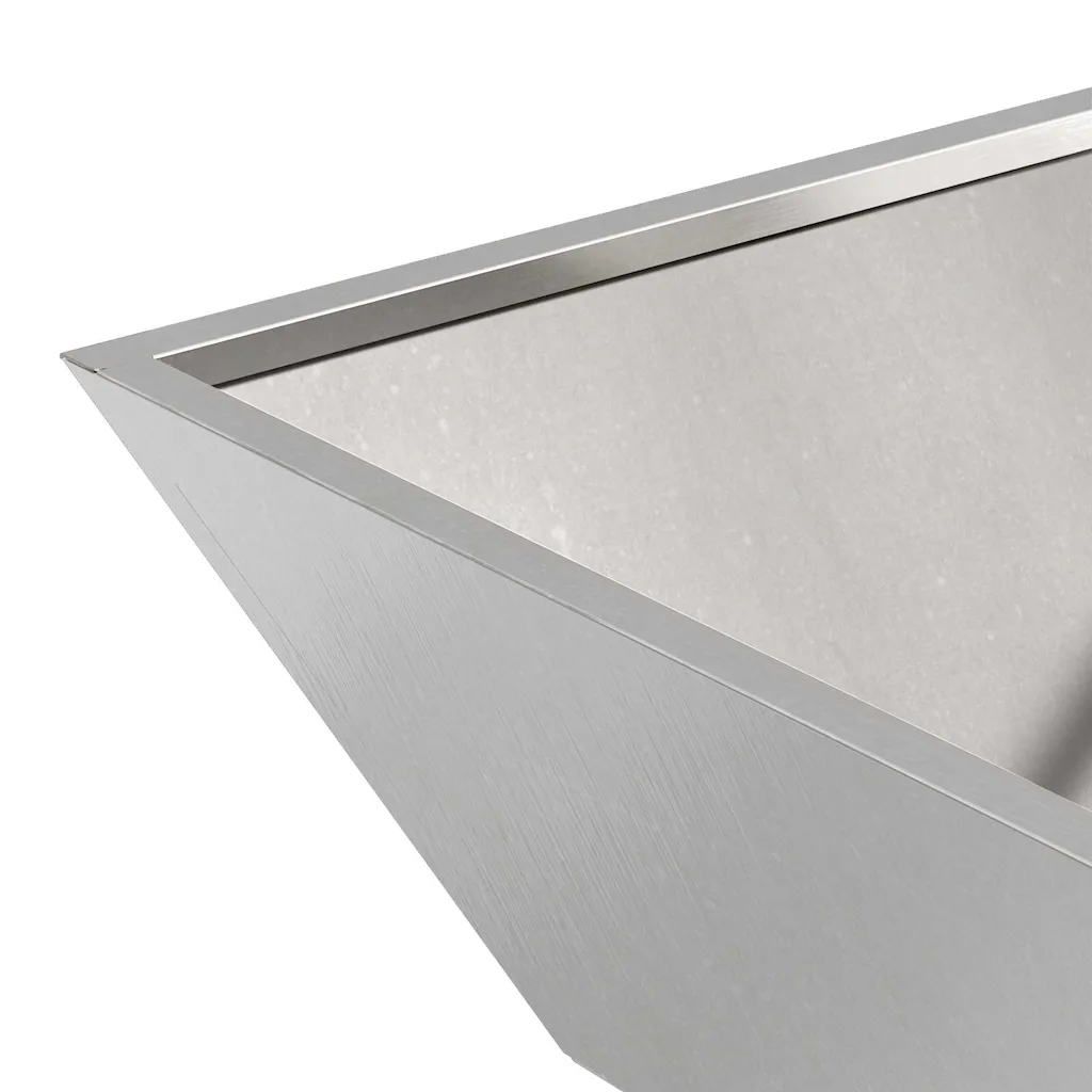 - 1 x hõbedane aia istutusnõu roostevabast terasest mõõtudega 50 x 50 x 15 cm