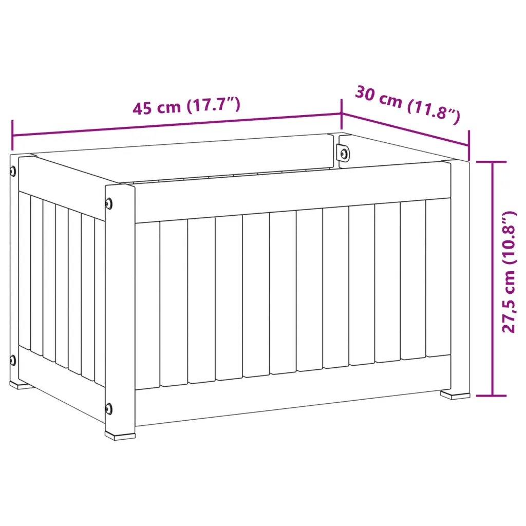• 1 x aia taimekast mõõtmetega 45 x 30 x 27,5 cm (P x L x K), valmistatud õliviimistlusega akaatsiapuidust ja pulbervärvitud terasraamiga