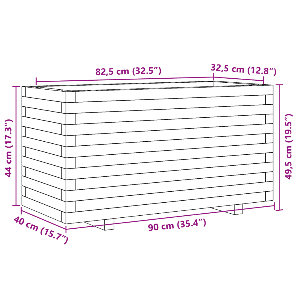 - Praktilised mõõdud 90 x 40 x 49,5 cm võimaldavad taimekasti hõlpsalt paigutada erinevatesse aianurkadesse ja kujundada kompaktsed peenrad.