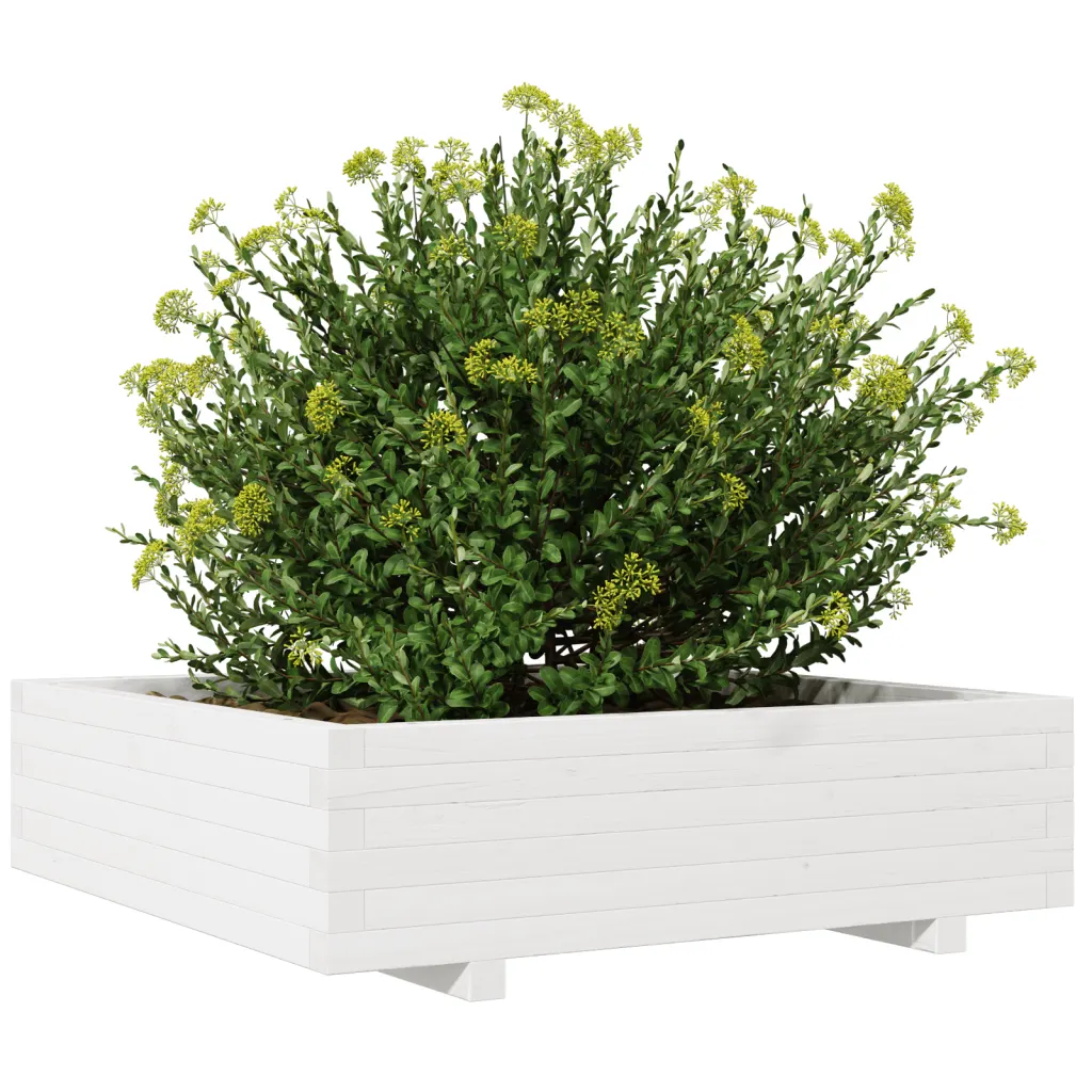 Vali see valge männipuidust aia taimekast, kui soovid luua aeda või terrassile selgepiirilise ja ruumika istutusala. See sobib nii väiksema köögiviljapeenra, maitsetaimede nurga kui ka dekoratiivse lilleistutuse jaoks, aidates hoida väliala korrastatud ja visuaalselt ühtse.