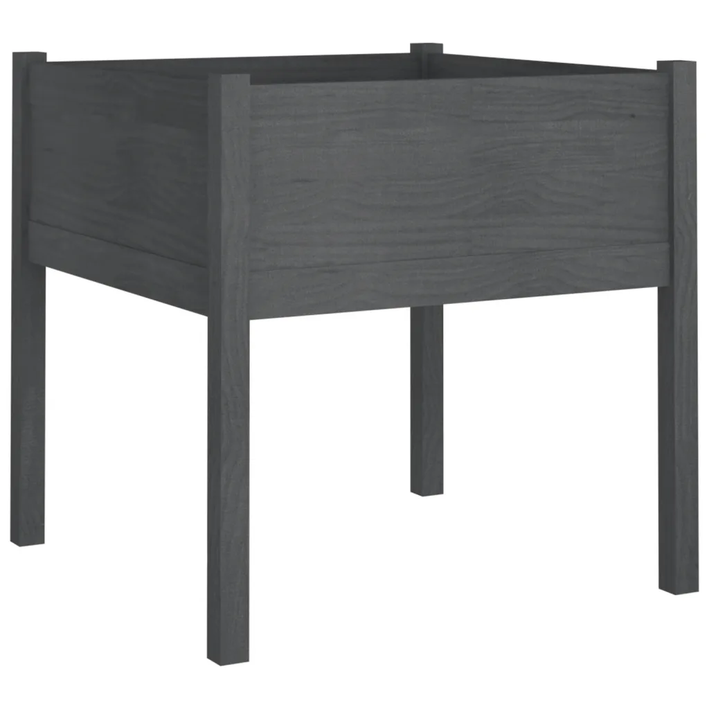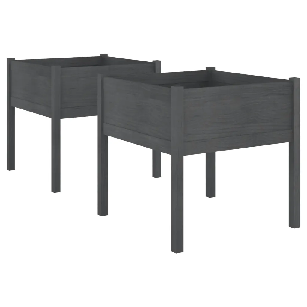 - 2 x aia taimekasti mõõtmetega 70 x 70 x 70 cm (pikkus x laius x kõrgus), halli värvusega männipuidust.