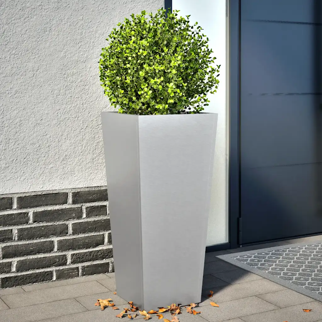 Need kõrged tsingitud terasest taimekastid sobivad taimede ja lillede istutamiseks aeda, rõdule või terrassile, aidates luua puhta ja kaasaegse ilmega rohelise ala. Hõbedane viimistlus ja koonuses kuju teevad neist nähtava dekoratiivse elemendi, samas kui põhjaga konstruktsioon hoiab mulla kindlalt paigal ja lihtsustab paigutamist eri pindadele.