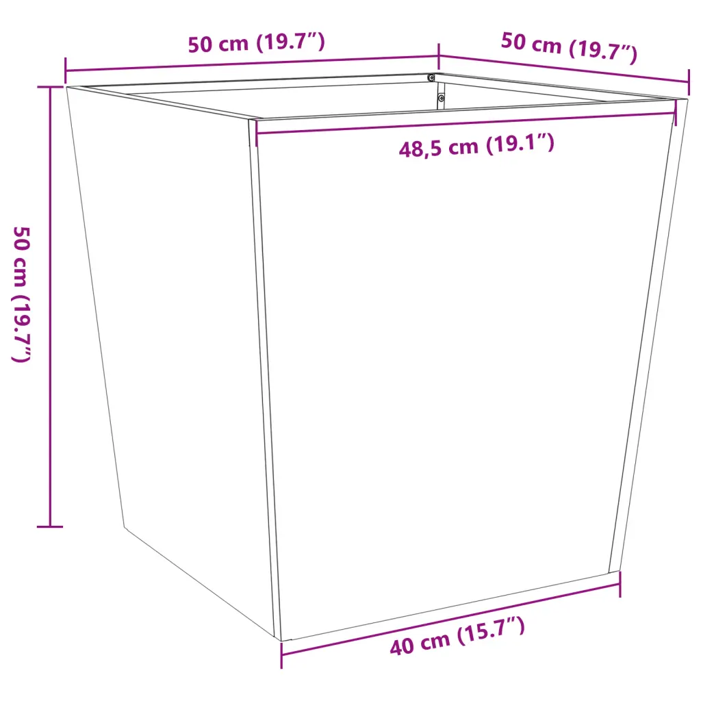 - 2 x taimekast antratsiithallist külmvaltsitud terasest, põhjaga, mõõt 50 x 50 x 50 cm