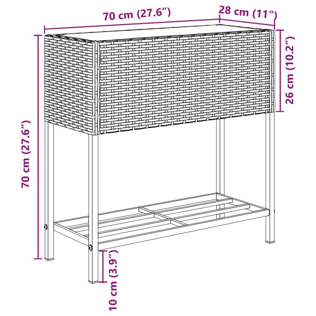 - Läbimõeldud mõõdud ja kandevõime – iga taimekasti mõõdud on 70 x 28 x 70 cm (L x S x K), sisemõõdud 65 x 25 x 26 cm ning kandevõime kastil kuni 20 kg ja riiulil kuni 12,8 kg.