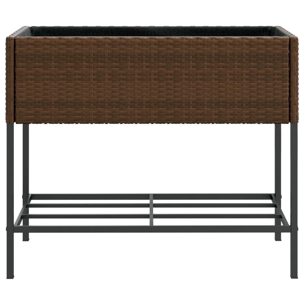 Need riiuliga aia taimekastid loovad praktilise ja esteetilise lahenduse lillede ning maitsetaimede kasvatamiseks. Pruunist polürotangist seinad ja pulbervärvitud terasraam tagavad vastupidavuse erinevates ilmastikuoludes, kõrgendatud konstruktsioon ja alumine riiul hoiavad istutusala puhtama ja korrastatuna.
