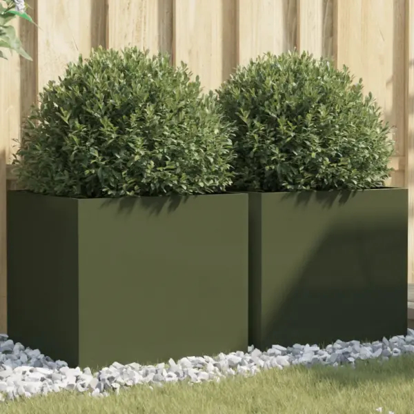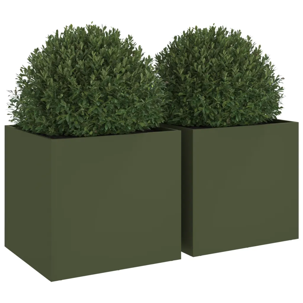 - 2 x taimekast mõõtmetega 49 x 47 x 46 cm, oliiviroheline külmvaltsitud teras