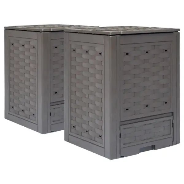 Need aiakompostrid aitavad mugavalt koguda lehti, umbrohtu ja niidetud muru ning muuta need kasutuskõlblikuks kompostiks. Rotangi välimusega pruun plast sulandub loomulikult aeda ja on lihtne hooldada. Tänu UV- ja ilmastikukindlale materjalile sobivad kompostikastid kasutamiseks läbi kogu hooaja.