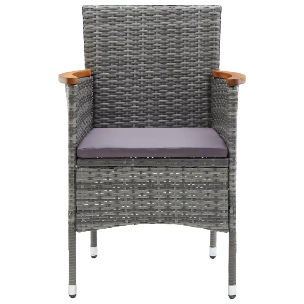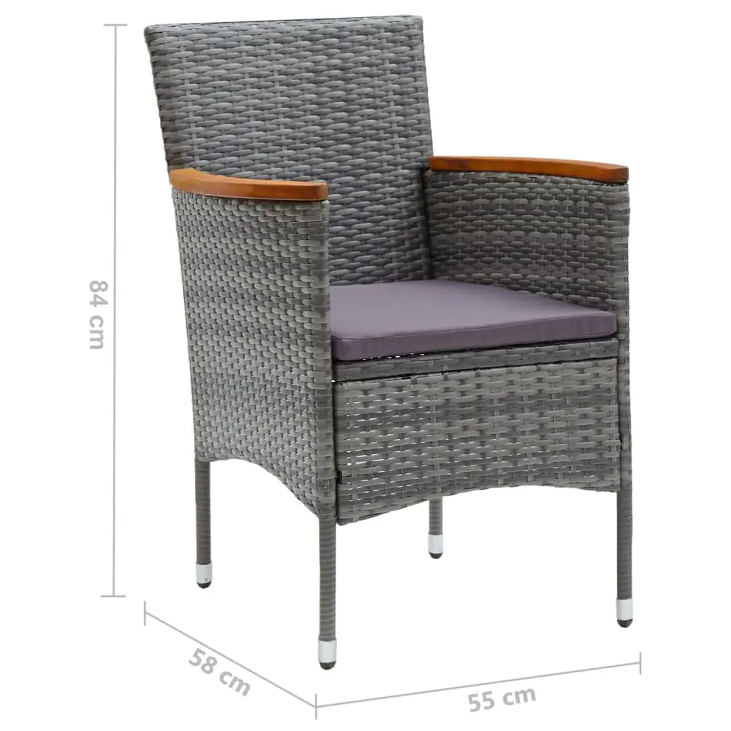See 7-osaline aiamööbli komplekt loob teie aeda, rõdule või terrassile mugava söögiala kuuele inimesele. Hallist PE-rotangist toolid tumehallide istmepatjadega ja must klaasplaadiga laud ühendavad neutraalse välimuse ja praktilise vastupidavuse.