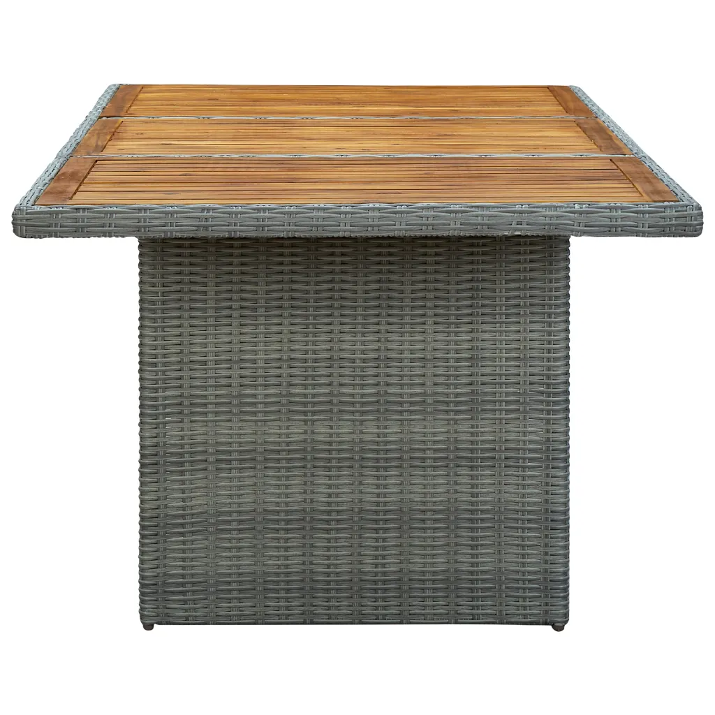See 9-osaline aiamööbli komplekt loob teie aeda või terrassile hubase söögiala, kus on ruumi kogu perele. Helehalli polürotangi punutis, mustad pehmed padjad ja naturaalne akaatsiapuidust lauaplaat moodustavad praktilise ja samas stiilse lahenduse nii igapäevaseks kasutuseks kui ka külaliste võõrustamiseks.