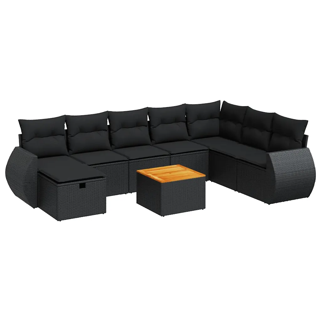 See 9 osaline modulaarne aiadiivani komplekt pakub rohkelt istekohti ja nutikaid panipaiku, et muuta terrass, rõdu või aianurk mugavaks lõõgastumispaigaks. Vastupidavast mustast polürotangist konstruktsioon, pehmed padjad ja praktiline panipaigaga jalapink loovad hubase koha nii igapäevaseks puhkamiseks kui ka külaliste võõrustamiseks.