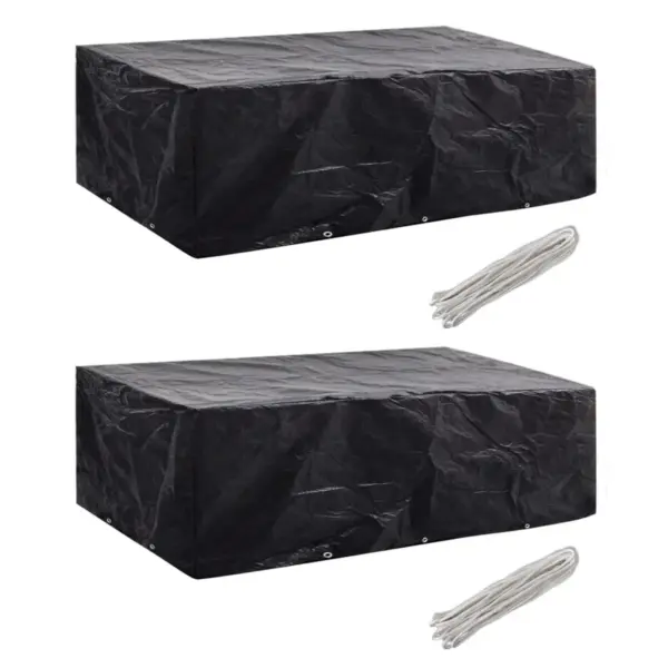 Need mustad aiamööblikatted on loodud kaitsma teie 8-kohalist rotangmööbli komplekti aasta ringi vihma, tuule, UV-kiirguse ja mustuse eest. Vastupidav polüetüleenist materjal on veekindel, UV-kindel ja rebenemiskindel, mistõttu sobib see igapäevaseks kasutamiseks aias, terrassil või rõdul.