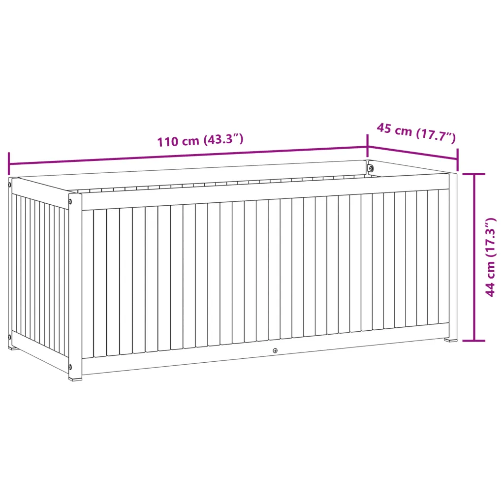 - Läbimõeldud mõõdud – mõõdud 110 x 45 x 44 cm (pikkus x laius x kõrgus) pakuvad heldet istutuspinda, jäädes samas piisavalt kompaktseks, et sobituda erinevatesse aianurkadesse.