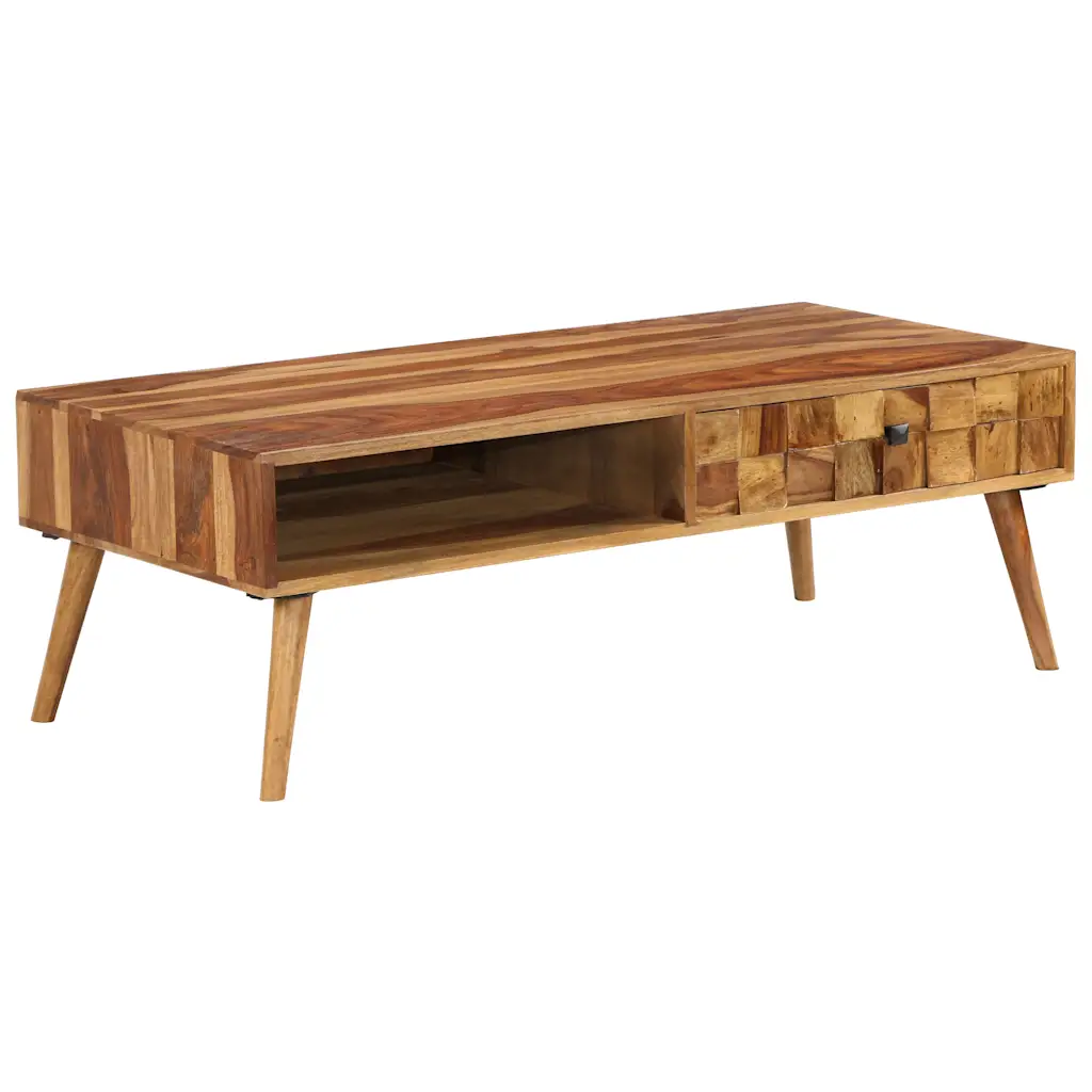 See meeviimistlusega akaatsiapuidust kohvilaud loob elutuppa sooja ja hubase keskpunkti ning pakub samal ajal praktilist hoiuruumi. Tugevast akaatsiapuidust konstruktsioon ja madal kõrgus sobivad hästi diivani ette, riiul ja sahtel hoiavad raamatud, ajakirjad ja puldid käeulatuses. Looduslik puidumuster muudab iga laua ainulaadseks ning lihvitud ja lakitud pind on lihtne hooldada.