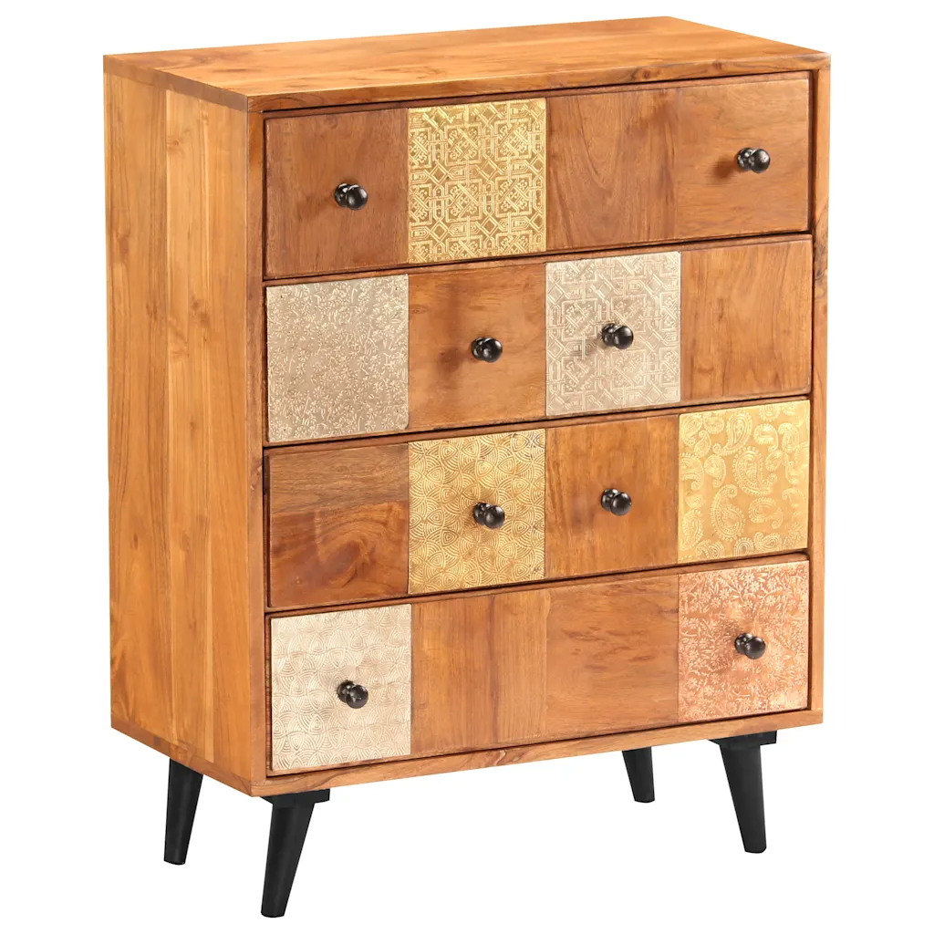 See nelja sahtliga akaatsiapuidust kummut toob interjööri mee toonis sooja ilme ja pakub samas rohkelt hoiuruumi igapäevaste esemete jaoks. Dekoratiivsed eri värvi metalldetailid sahtlite esipaneelidel lisavad mööblile omapärase, veidi vanaaegse iseloomu ning muudavad selle ruumis pilgupüüdvaks osaks.