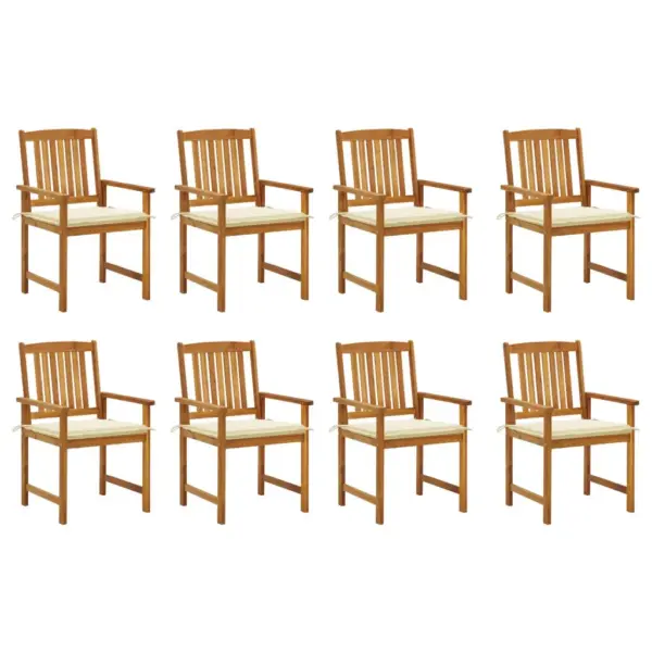 See 8-osaline aiatoolide komplekt sobib hästi nii peredele kui ka neile, kes võõrustavad sageli külalisi. Vastupidav õliviimistlusega akaatsiapuit, ilmastikukindel konstruktsioon ja mugavad kreemjad istmepadjad loovad funktsionaalse ning ühtse lahenduse teie terrassi või aia istumisala sisustamiseks.
