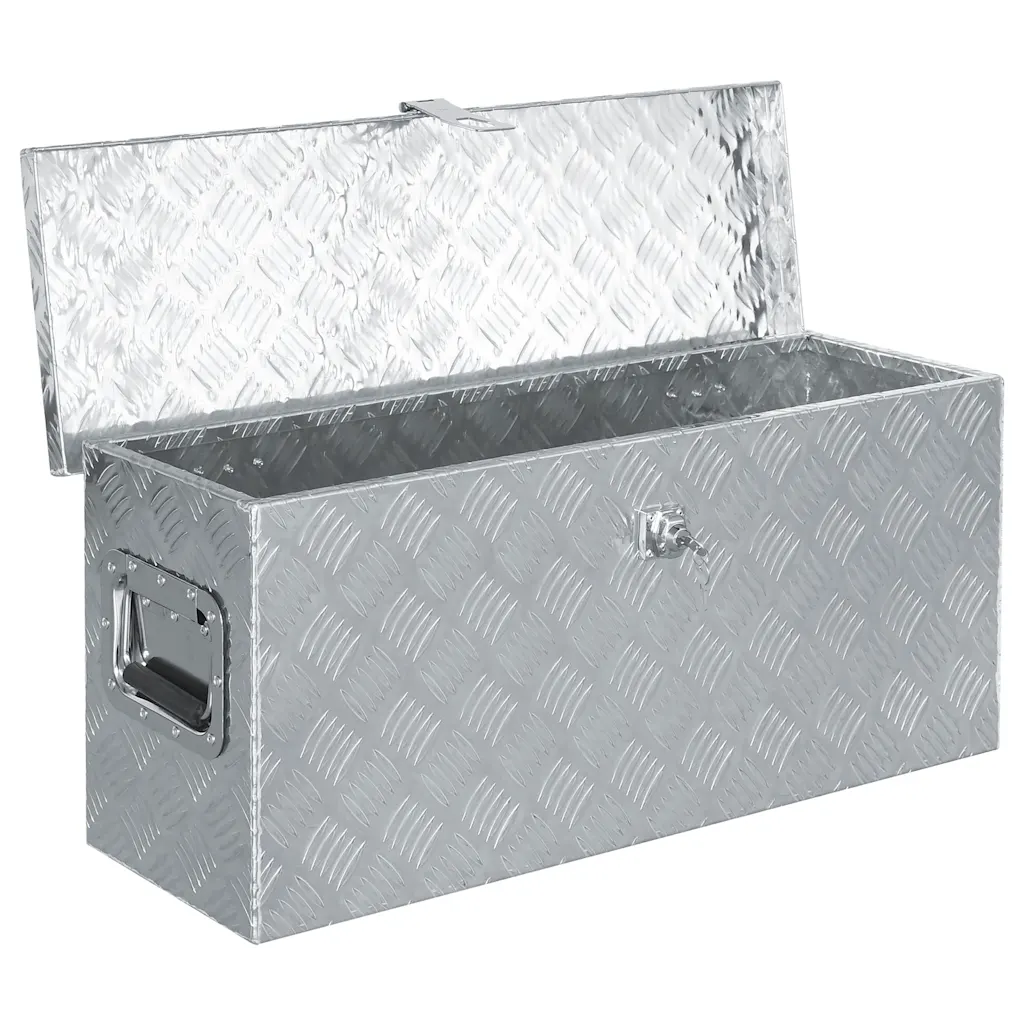 • 1 hõbedane alumiiniumist hoiukast mõõtudega 76,5 x 26,5 x 33 cm