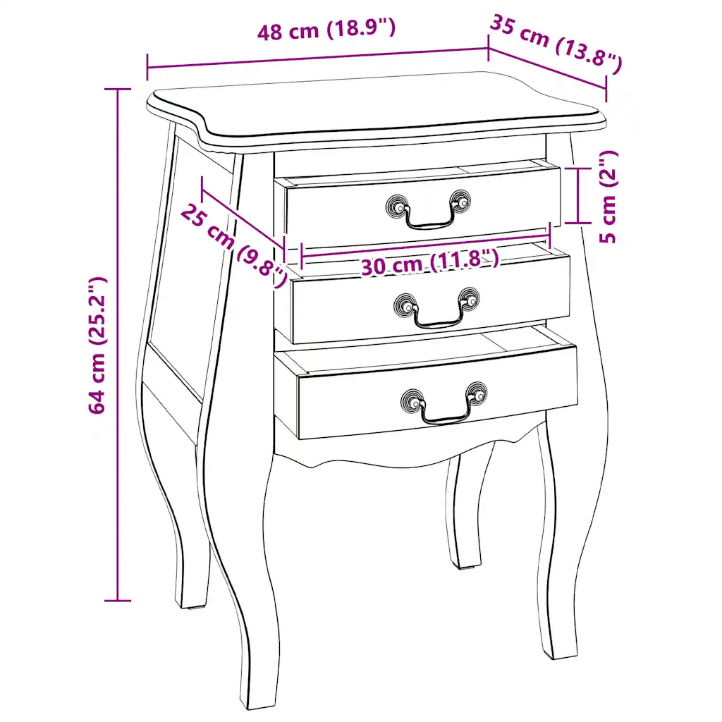 Mahagonipuidust öökapp ühendab kompaktse suuruse ja magamistoale sobiva hoiuruumi. Antiikstiilis disain ja soe puidutoon loovad hubase atmosfääri, samal ajal kui kolm sahtlit hoiavad öökapil vajaminevad esemed käeulatuses ja korras.