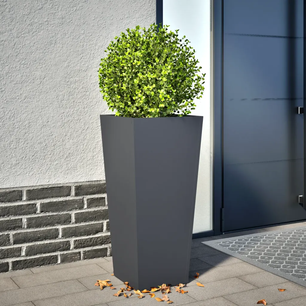 See taimekast ühendab vastupidava metallkonstruktsiooni ja kompaktse, kuid ruumika kuju, mis sobib hästi nii väikestele kui suurematele õuealadel. Antratsiithall viimistlus loob tagasihoidliku ja korrastatud ilme, rõhutades taimede rohelust ja õisi. Kui otsid lihtsalt hooldatavat ja stabiilset taimekasti aeda, rõdule või terrassile, on see mudel praktiline valik pikaks kasutusajaks.