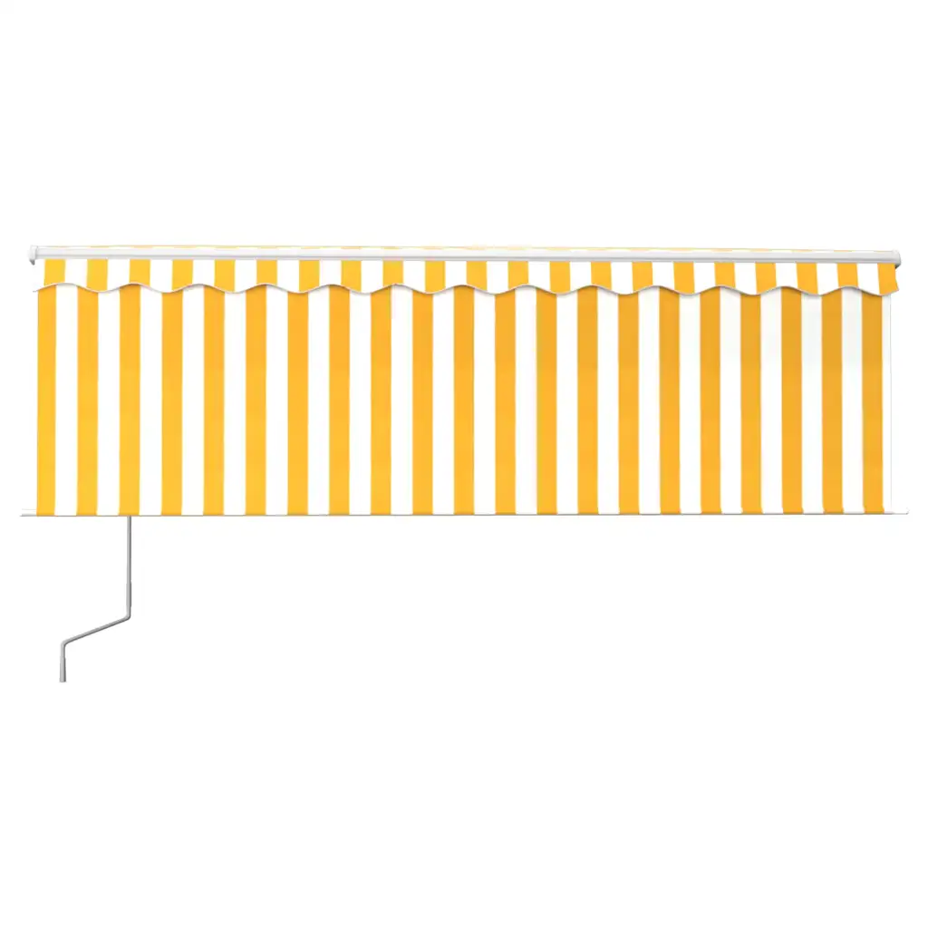 See automaatne terrassivarikatus rulooga loob rõdule või terrassile varjulise pinna, kaitstes teid päikese ja UV-kiirguse eest. Kollase-valge triibuline kangas ja valge alumiiniumraam annavad õuealale värske ja kaasaegse ilme.