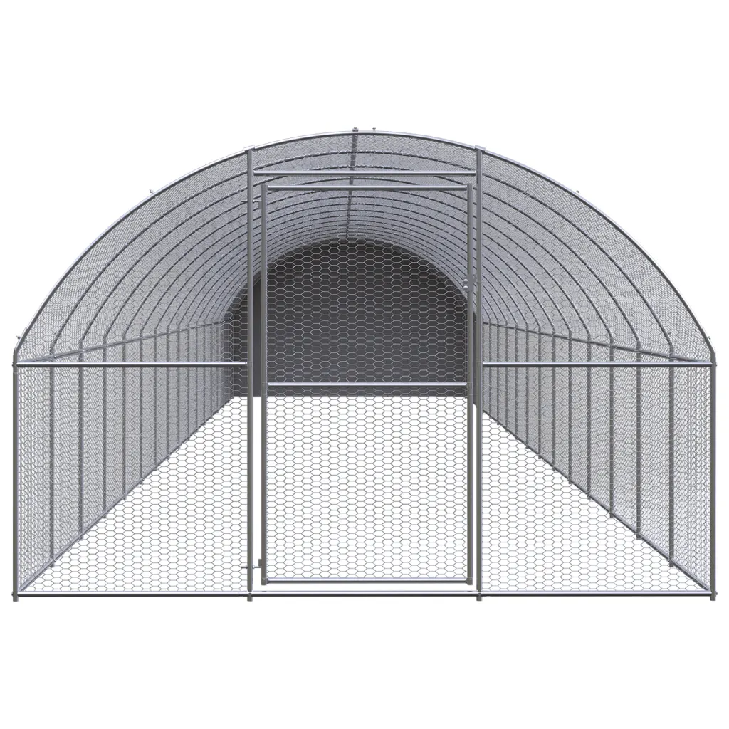 See suur tsingitud terasest kanakuut veekindla katusega pakub kanadele, partidele ja muudele väikeloomadele rohkelt turvalist liikumisruumi õues. Kvaliteetsest metallist raam ja traatvõrk loovad tugeva konstruktsiooni, samal ajal kui PE-katus kaitseb linde vihma ja otsese päikese eest.