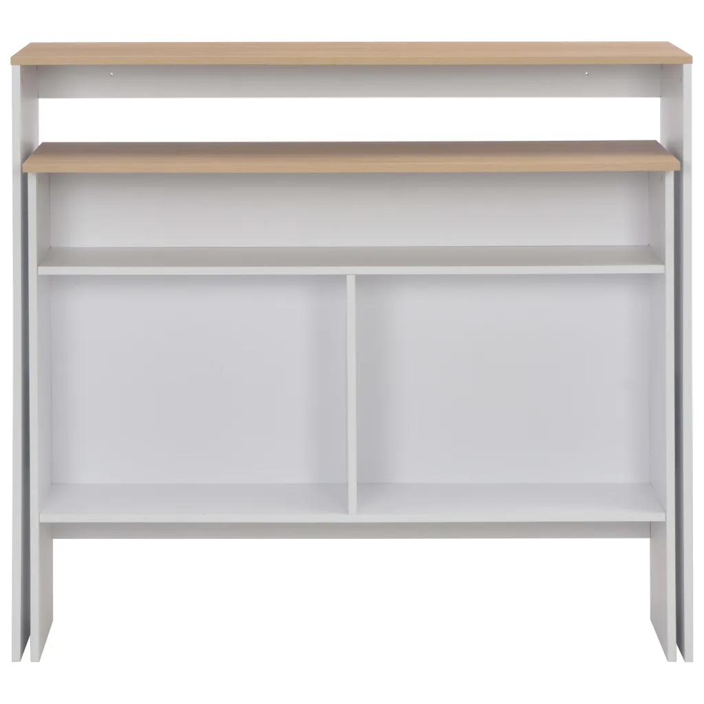 See kahe lauaplaadiga baarilaud on praktiline lahendus kööki või baarinurka, pakkudes nii serveerimispinda kui ka lisahoiuruumi. Valge korpus koos naturaalse tammetoonis lauaplaadiga sobitub kergesti erinevate sisekujundustega, muutes laua ühtaegu tagasihoidlikult pilkupüüdvaks ja igapäevaselt mugavaks kasutada.