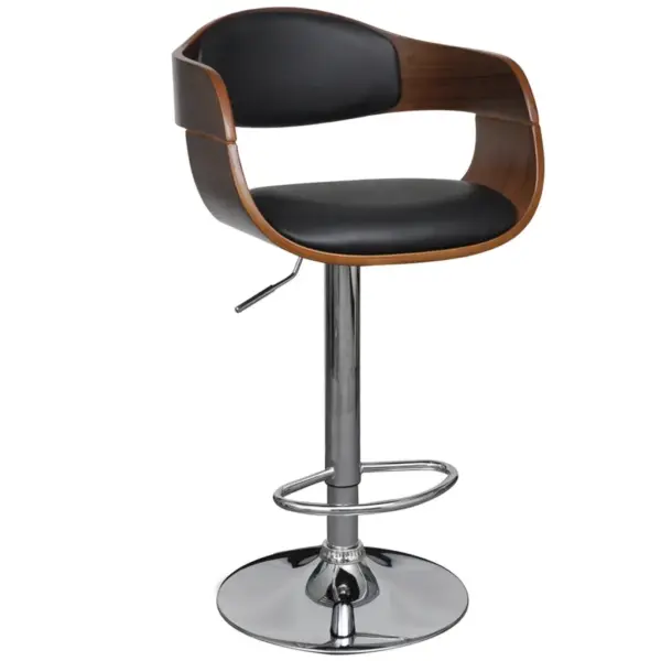 See reguleeritava kõrgusega baaritool ühendab lihtsa ajatu vormi ja praktilise mugavuse. Painutatud puitraam koos musta ja pruuni tooniga loob sooja ning modernse ilme, samal ajal kui kunstnahast polsterdatud iste ja seljatugi pakuvad tugevat toetust ka pikemal istumisel. Kroomitud jalg ja jalatugi lisavad stabiilsust ning võimaldavad mugavalt istuda nii köögileti kui kodubaarileti taga.