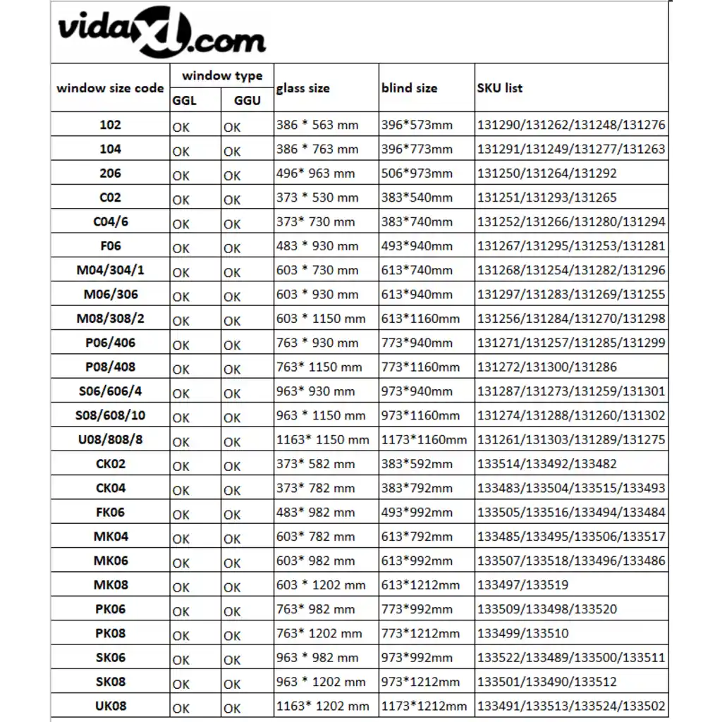 Enne ostu kontrollige hoolikalt, et aknaklaasi mõõt oleks 373 x 730 mm ning et valitud ruloo mõõt 383 x 740 mm oleks sellest veidi suurem, et tagada korrektne katvus. Akna suuruse kood C04/6 sobib ainult sama suuruskoodiga katuseaknaga ega ühildu näiteks VELUX akna suuruskoodiga CK04.