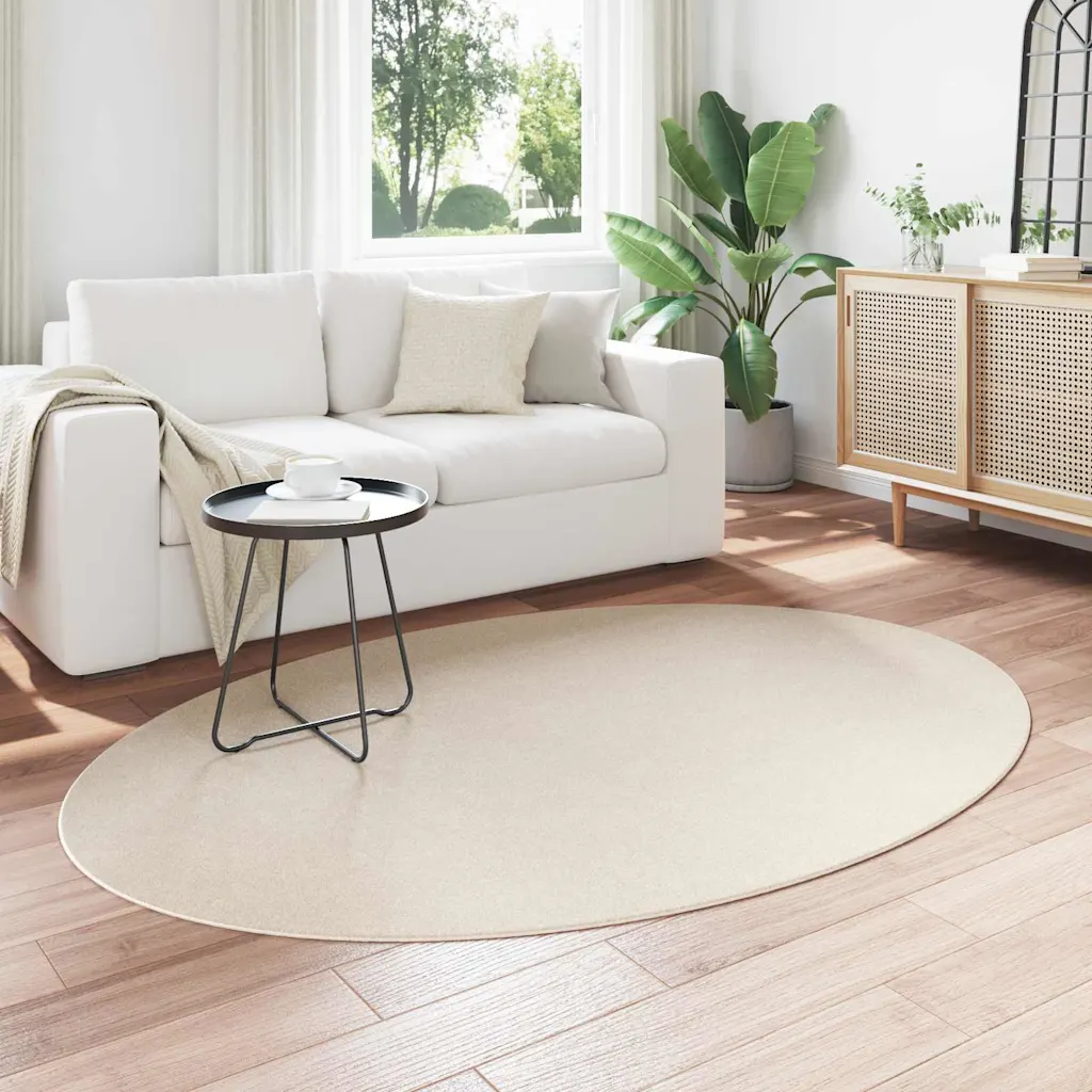 See beež ovaalne alavaip ühendab omavahel praktilised omadused ja tagasihoidliku disaini, pakkudes siseruumides mugavat ja turvalist põrandakatet. Libisemisvastane põhi, lihtne hooldus ja masinpestav materjal teevad sellest sobiva valiku nii elutuppa kui ka koridori, kui soovid lisada põrandale pehmust ilma liigselt ruumi koormamata.