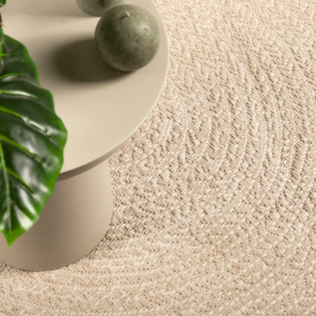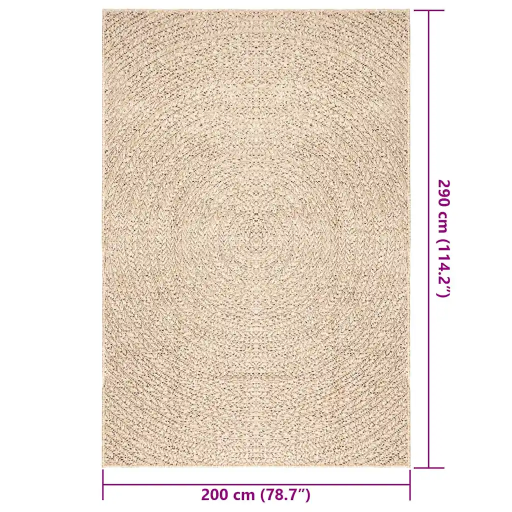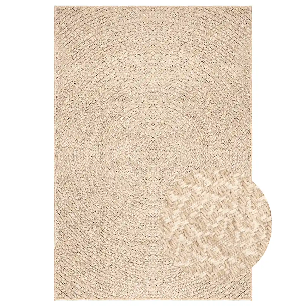 ZIZUR seeria beež vaip suuruses 200 x 290 cm on loodud kasutamiseks nii sise- kui välistingimustes. 100% polüpropüleenist valmistatud vaip näeb välja nagu naturaalne džuudivaip, kuid on vastupidav, niiskuskindel ja lihtne hooldada, muutes selle heaks valikuks elutuppa, kööki, rõdule, terrassile või aiamööbli alla.
