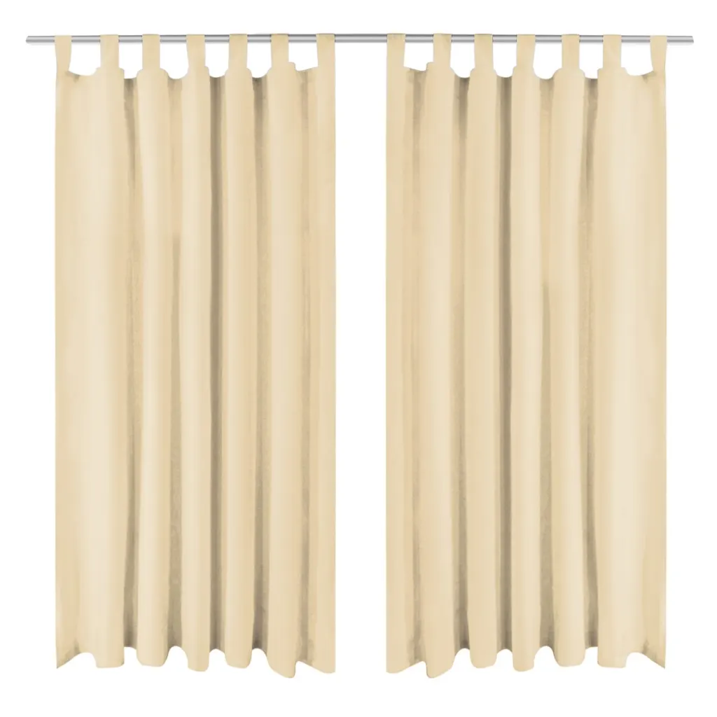 - Kaks beeži mikrosatiinist kardinat mõõdus 140 x 245 cm