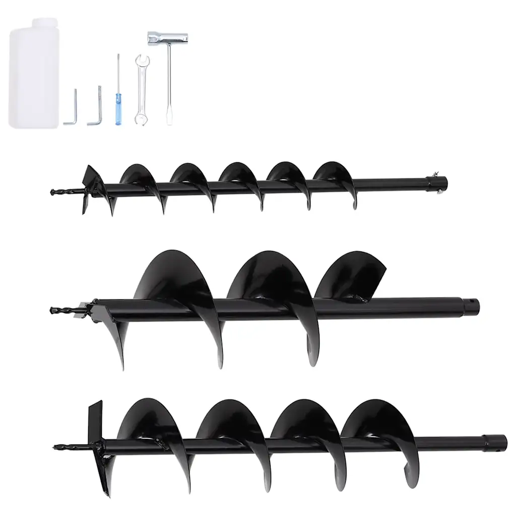 - 3 vahetatavat puuri läbimõõtudega 100 mm, 150 mm ja 200 mm, pikkus 72 cm