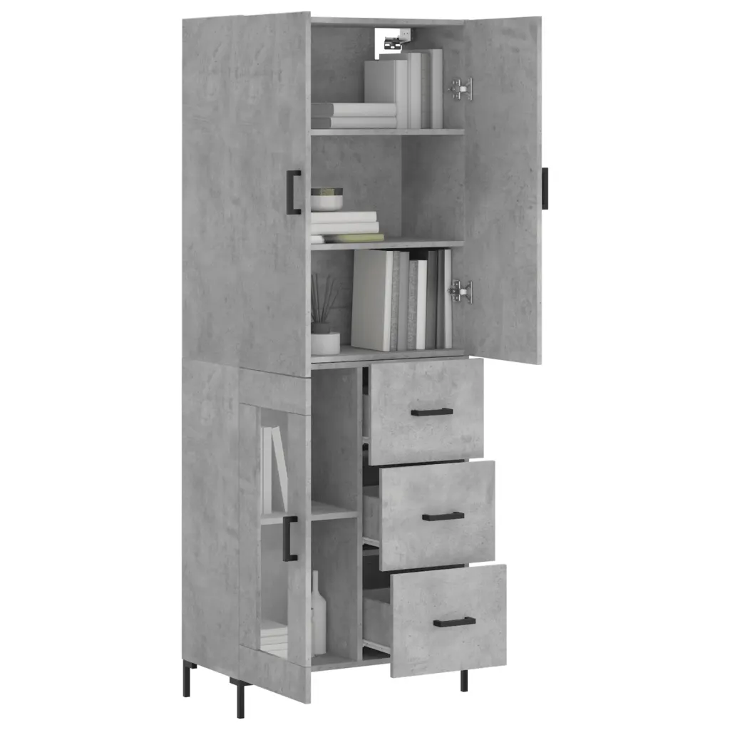 See betoonhalli viimistlusega kõrge kapp aitab hoida igapäevased esemed korrastatult ja käepäraselt, kasutades ruumi tõhusalt ka kõrgusesse. Niiskuskindlast tehispuidust korpus, klaasdetail ja stabiilsed metalljalad loovad tagasihoidliku, kuid modernse ilme, mis sobib erinevatesse interjööridesse.
