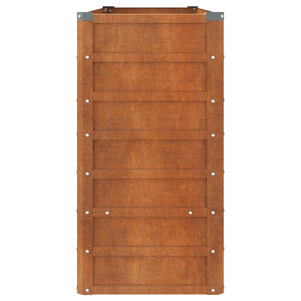 See ruumikas ja vastupidav taimekast sobib hästi nii dekoratiivsete lillede kui ka praktiliste maitsetaimede ja juurviljade kasvatamiseks. Ilmastikukindel corten-teras vajab vähe hooldust ning ajas süvenev roostevärvi toon rikastab aia üldilmet. Avatud põhi ja tugev konstruktsioon loovad taimedele head kasvutingimused, mistõttu on tegemist funktsionaalse ja pikaealise valikuga välihaljastusse.