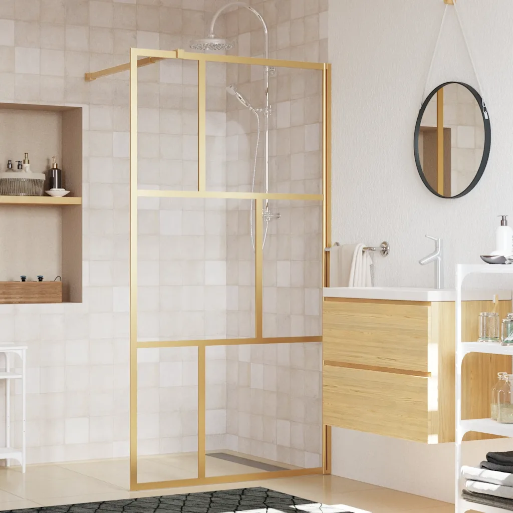 See kuldse raamiga dušinurga sein annab vannitoale modernse ilme ning aitab hoida ülejäänud põranda kuivana. 5 mm läbipaistev karastatud klaas ja vastupidav alumiiniumraam moodustavad stabiilse konstruktsiooni, mida saab tänu reguleeritavale profiilile hõlpsasti erinevatele seinamõõtudele kohandada.
