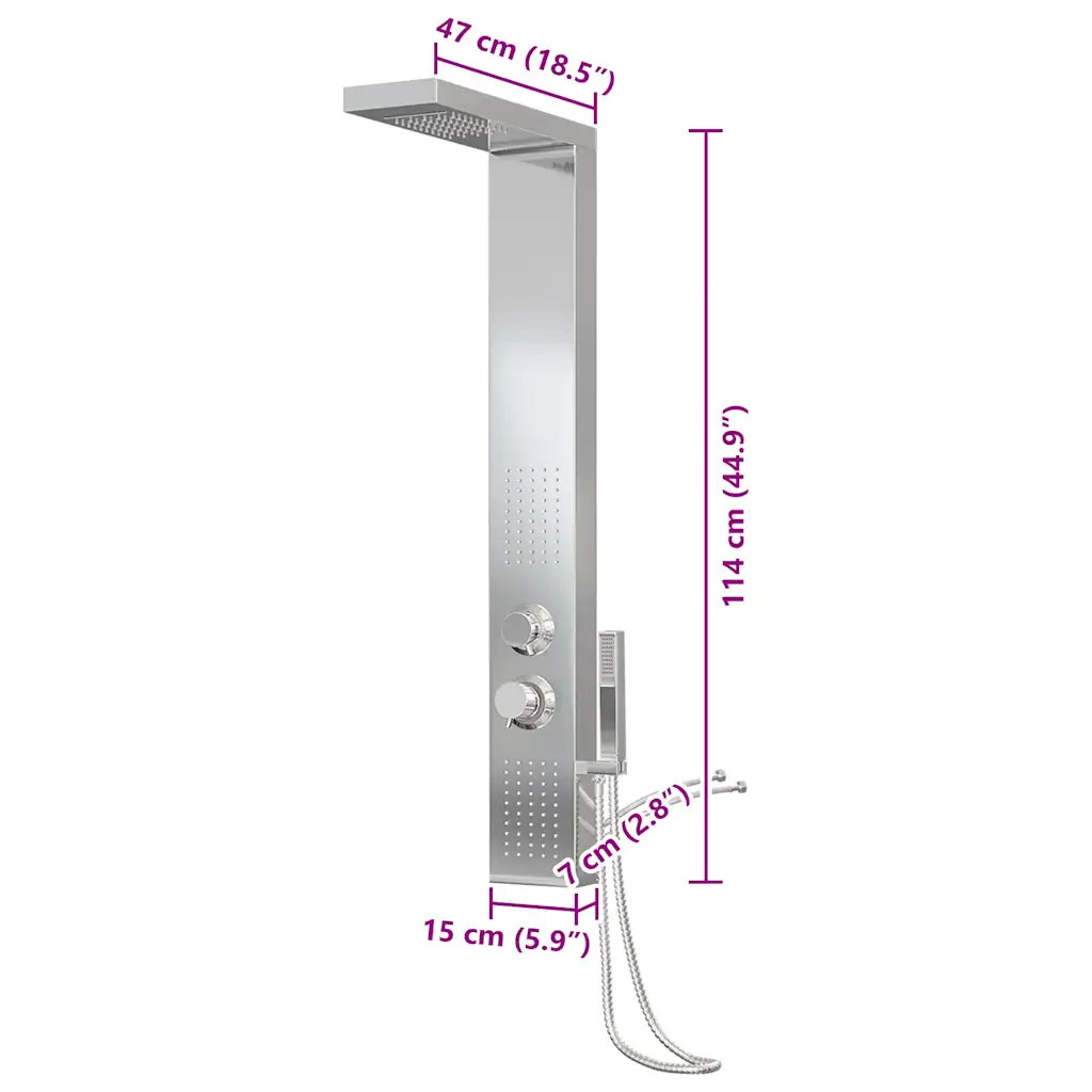 Kui soovite ühendada ühes lahenduses vihmaduši, massaažifunktsiooni ja käeshoitava duši, pakub see dušipaneel kõik vajalikud võimalused. Silikoonotsikud vähendavad katlakivi teket ja lihtsustavad hooldust, vastupidav roostevabast terasest korpus peab hästi vastu ning modernne hõbedane disain sobib erinevatesse vannitubadesse. Nii saate luua oma vannituppa mugava ja funktsionaalse dušinurga.