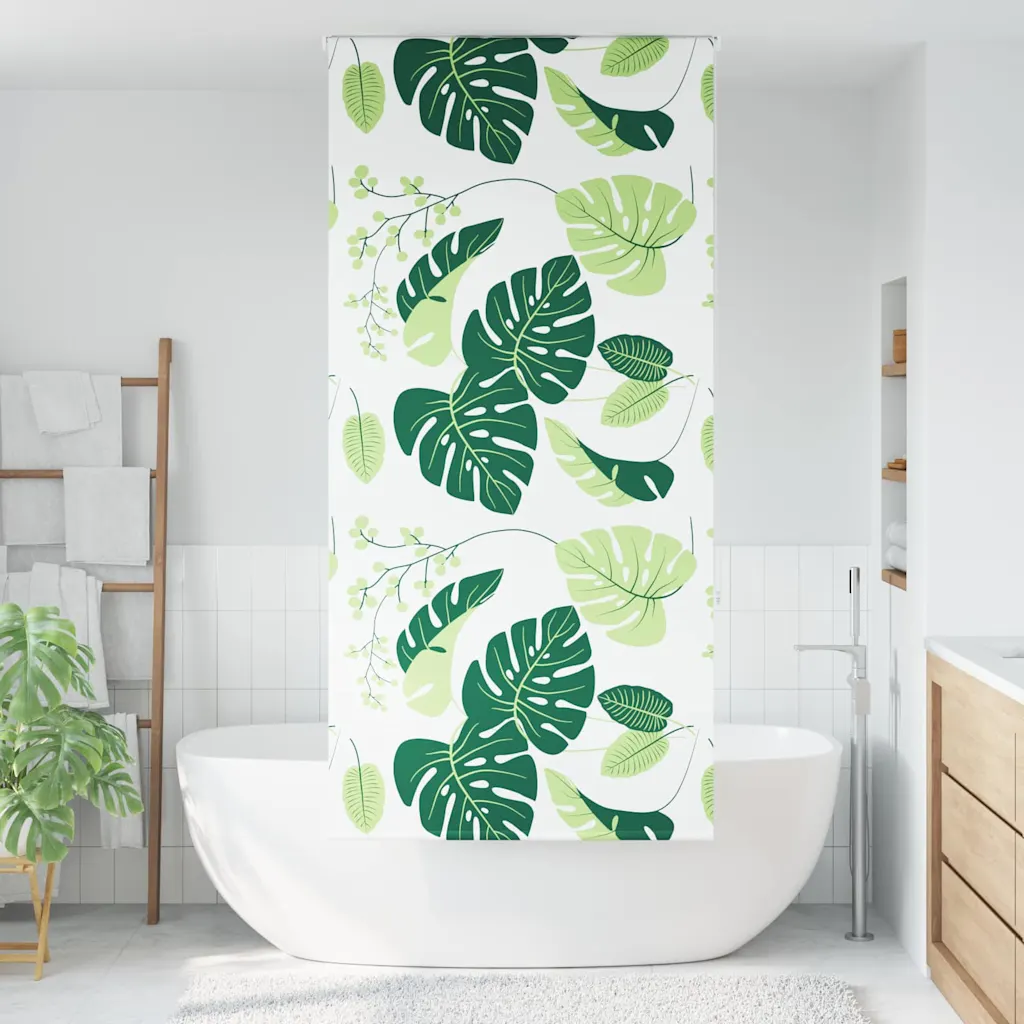 See duširull-ruloo aitab hoida vannitoa kuiva ja korrastatuna, pakkudes samal ajal pesemisel vajalikku privaatsust. Roheliste lehtede mustriga ruloo lisab ruumile värske ilme ning ülesrullitav mehhanism säästab väärtuslikku põrandapinda, sest kui rulooga ei ole vaja dušinurka sulgeda, püsib see kompaktselt rulli peal.