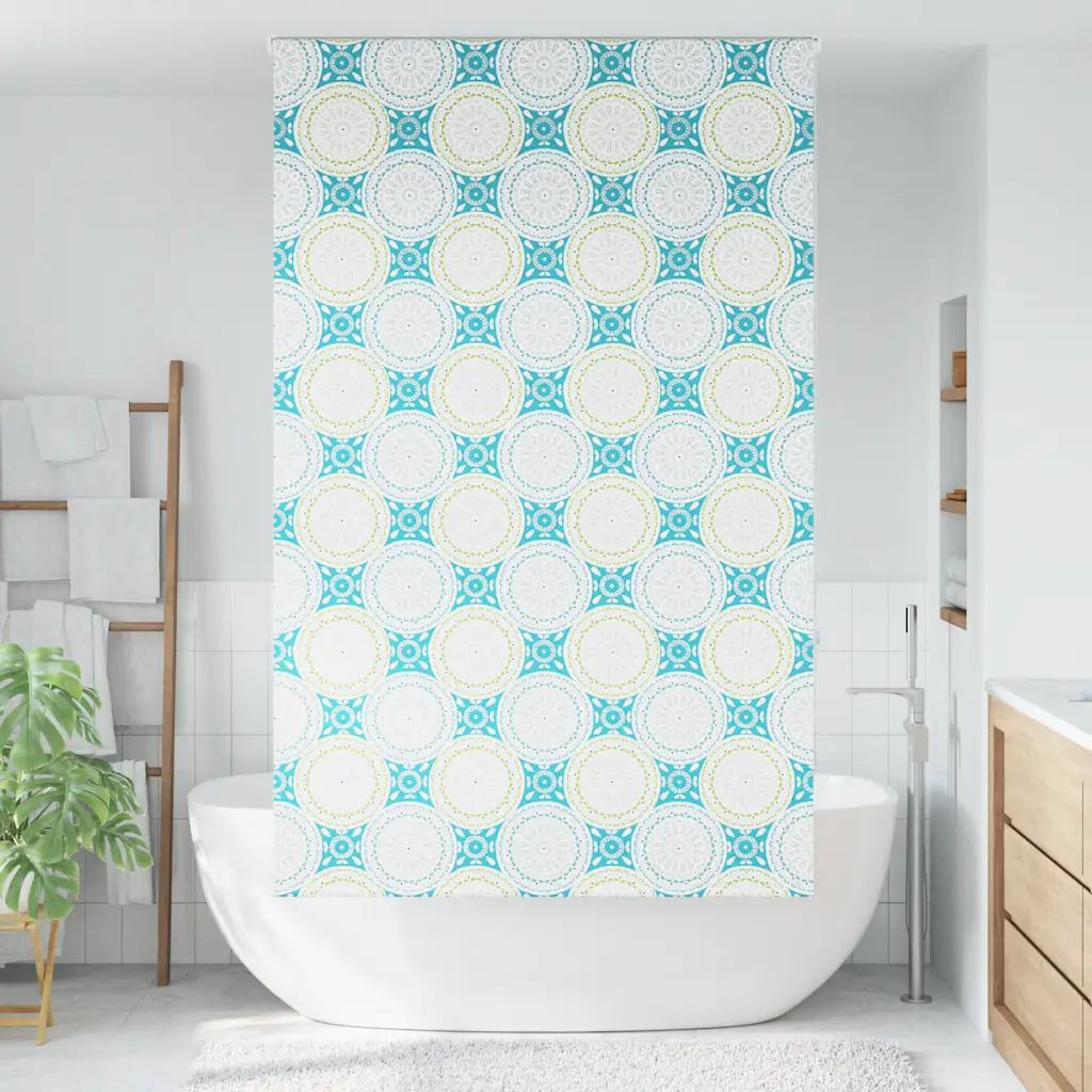 Kui soovite ühendada praktilise pritsmekaitse ja dekoratiivse välimuse, on see sinine ornamentse mustriga duširuloo sobiv lahendus. Veekindel ja kergesti hooldatav PEVA-materjal, mitmekülgsed paigaldusviisid ning turvaline keti lahendus teevad sellest funktsionaalse lisandi igasse vannituppa.
