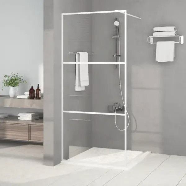 See läbipaistev dušisein aitab hoida vannitoa põranda kuivemana, luues samal ajal avatud ja valgusküllase dušinurga. Valge alumiiniumraam ja selge ESG-klaas sobituvad kergesti erinevatesse vannitoastiilidesse, pakkudes praktilist ja diskreetset lahendust vee pritsmete tõkestamiseks.