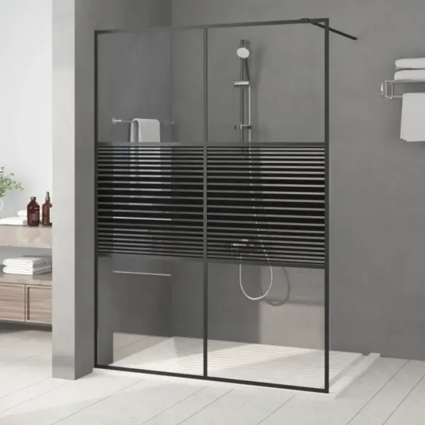 Musta alumiiniumraamiga dušisein aitab hoida vannitoa põranda kuivana ja loob selge, modernse ilme. Läbipaistev 5 mm karastatud ESG-klaas on vastupidav igapäevasele kasutusele, samas pakub keskmise klaasi mustade triipudega disain veidi rohkem privaatsust duši all käies.