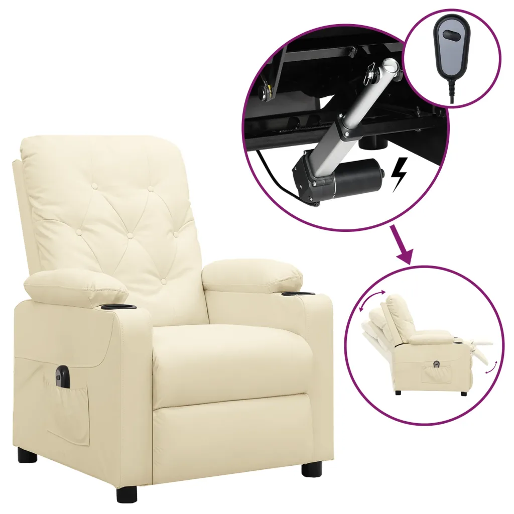 See elektriline lamamistugitool pakub mugavat kohta puhkamiseks ja televiisori vaatamiseks. Elektrimootoriga reguleeritav selja- ja jalatugi võimaldavad valida endale sobiva asendi, samal ajal kui pehme polsterdus ja laiad käetoed loovad hubase istumiskogemuse. Kreemjasvalge kunstnahk annab tugitoolile neutraalse ja elegantselt ajatu ilme.