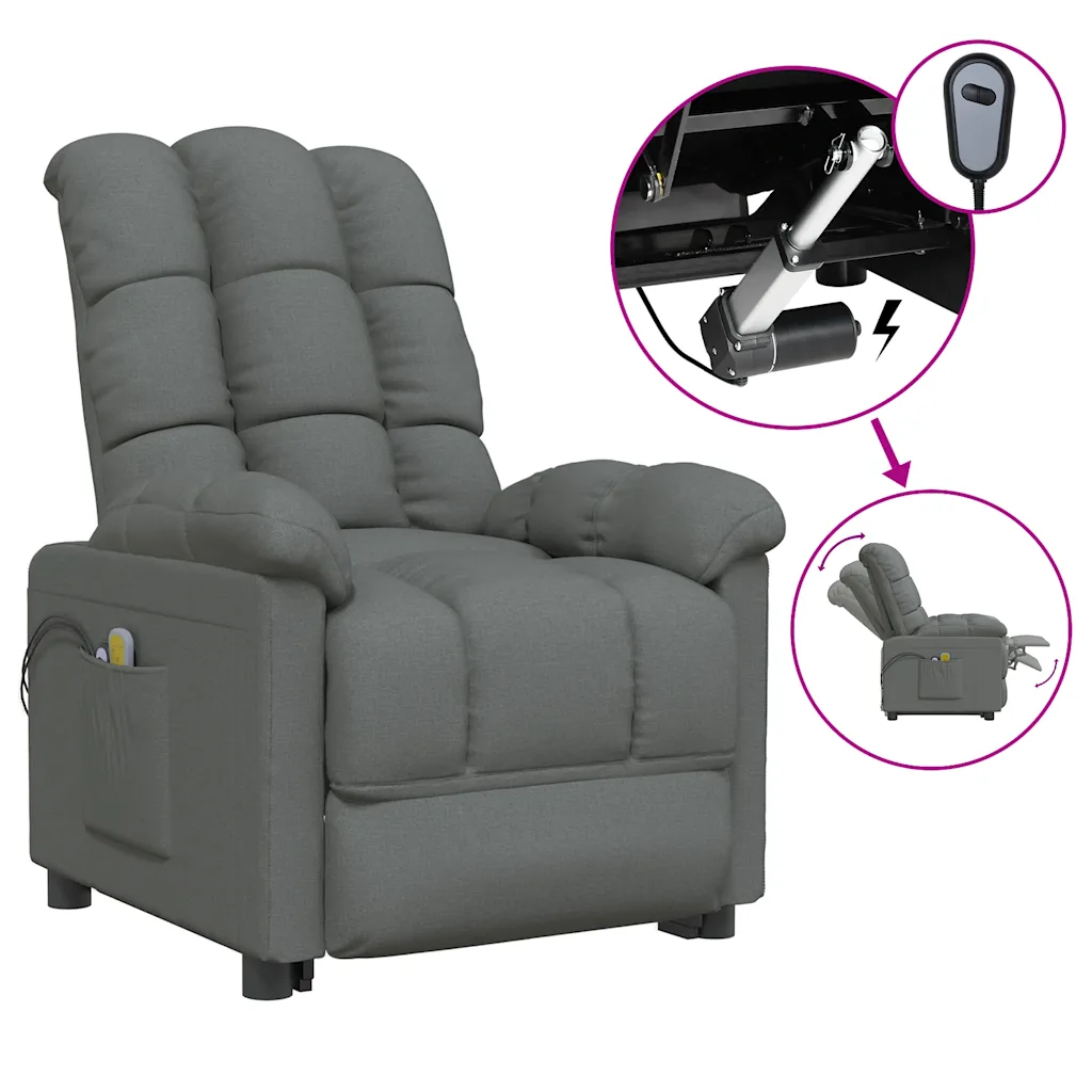 See tumehallist kangast massaažitool ühendab elektrilise lamamisfunktsiooni, 6-punkti vibratsioonmassaaži ja mugava polsterduse, pakkudes hubast puhkepaika elutuppa või puhkenurka. Tugev raam, praktiline küljetasku ja hooldusmugav kangas teevad sellest tasakaalustatud valiku, kui otsid funktsionaalset ja mugavat tugitooli igapäevaseks kasutuseks.