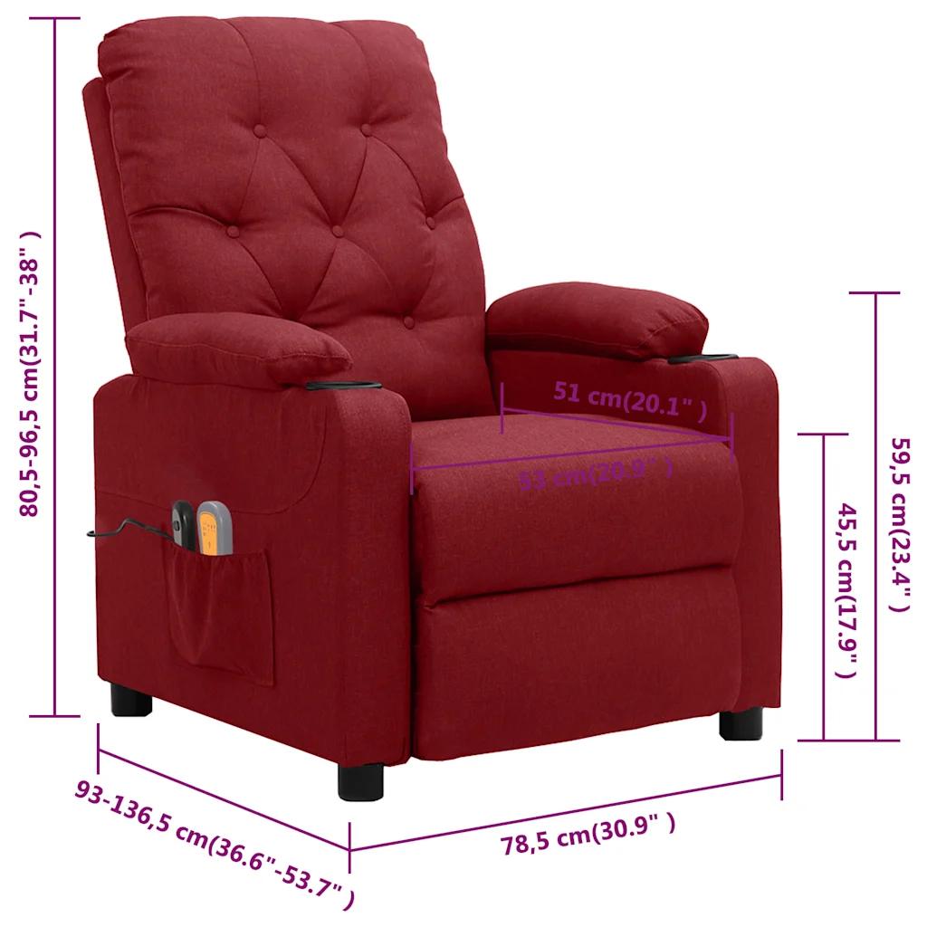 See elektriline massaažitool loob mugava puhkenurga, kus lõõgastuda pärast pikka päeva. Veinipunane polüesterkangas, tihkelt polsterdatud iste ja seljatugi ning laiad käetoed pakuvad pehmet tuge, elektriliselt reguleeritav selja- ja jalatugi aitavad leida sobiva asendi. Sisseehitatud 6-punkti vibratsioonmassaaž aitab vähendada pinget ja pakkuda mõnusat massaažitunnet just siis, kui seda vajad.