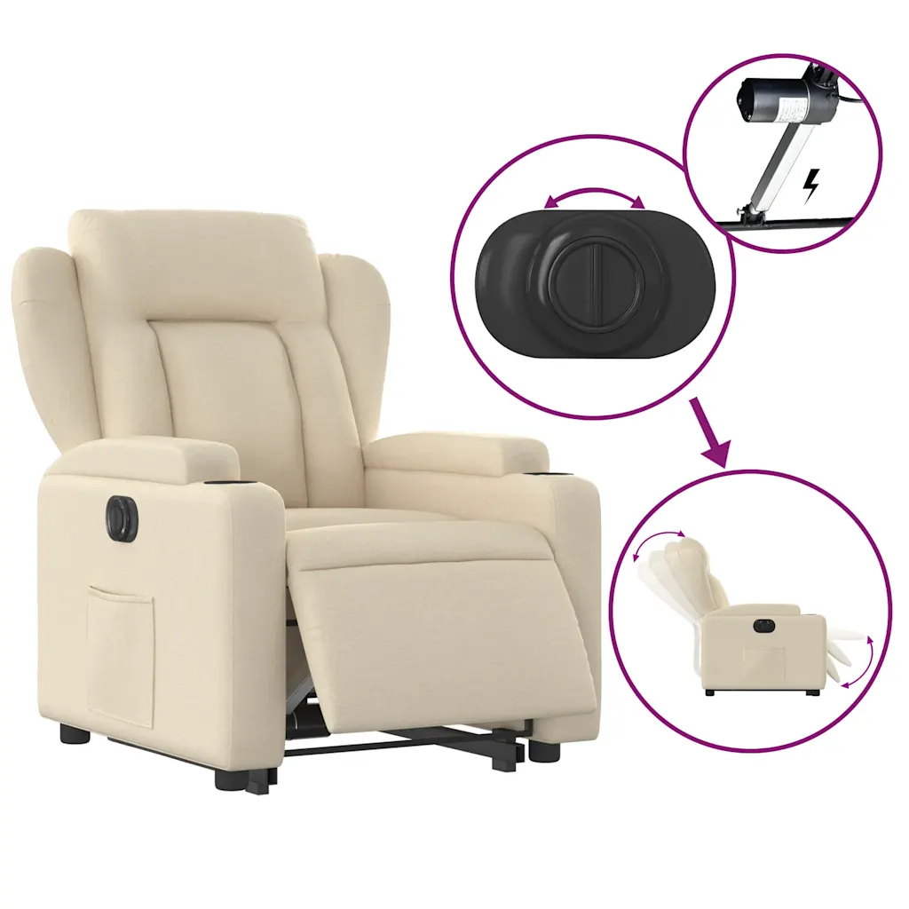 See elektriline püstitõusmist toetav tugitool pakub mugavat abi istuma ja püsti liikumisel ning loob lõõgastava koha puhkamiseks. Kreemjasvalge polüesterkangas, tihke polsterdus ja reguleeritav lamamisfunktsioon kuni 135 kraadi teevad toolist hea valiku elutuppa või puhkenurka.