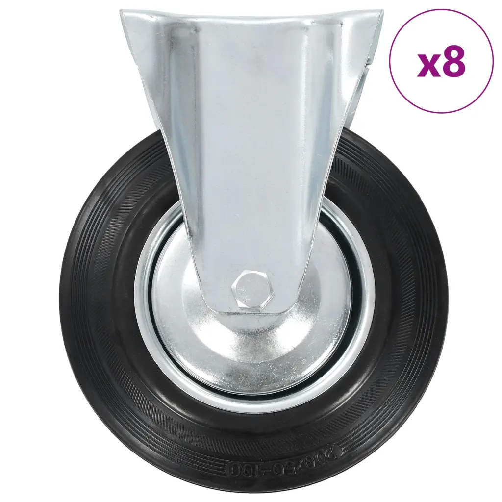 - 8 musta fikseeritud kummiratast kinnitusplaadiga, ratta läbimõõt 200 mm