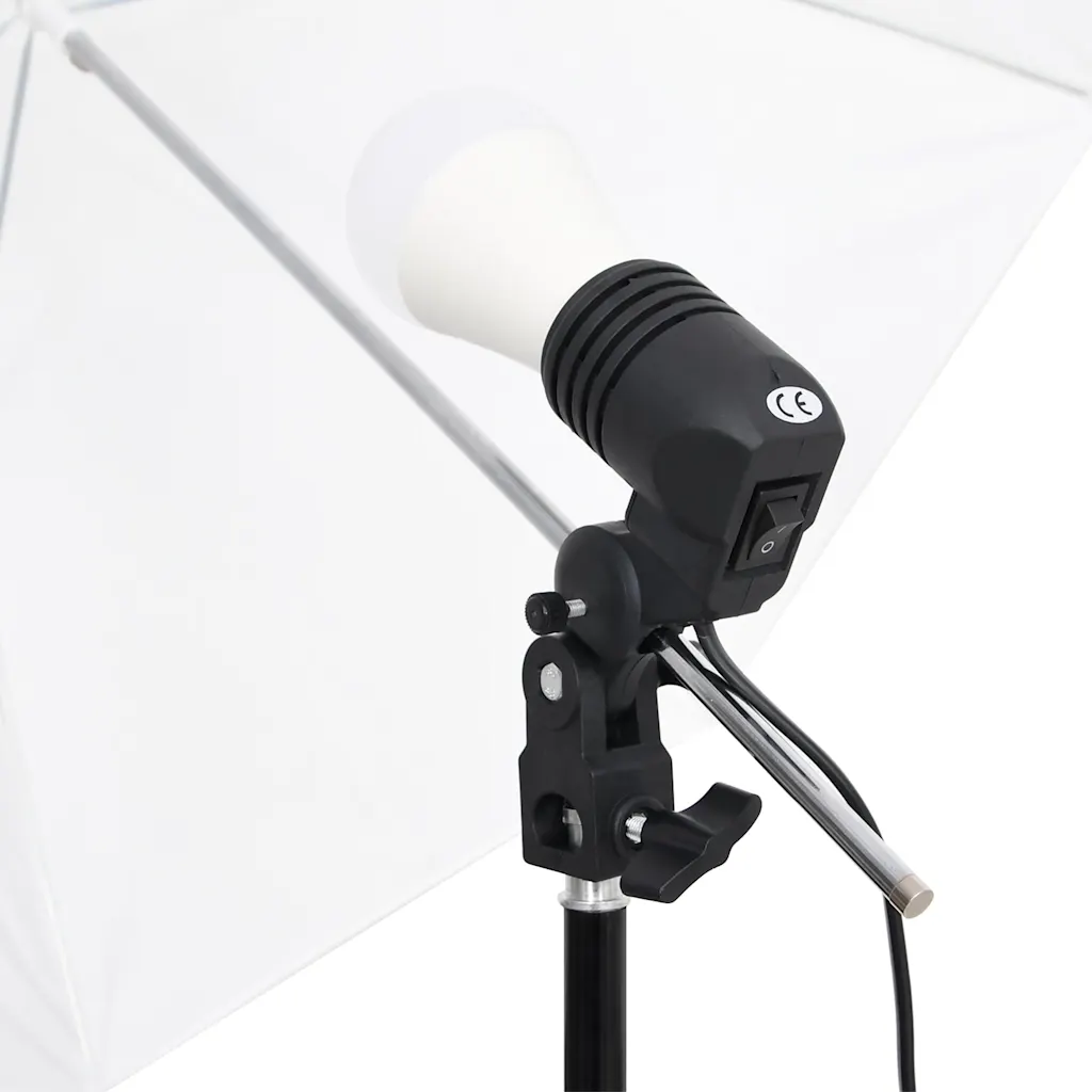 • Pehme valgus vihmavarjudega – kaks valget vihmavarju hajutavad valguse ühtlaselt, aidates vähendada teravaid varje näol ja toodetel.
