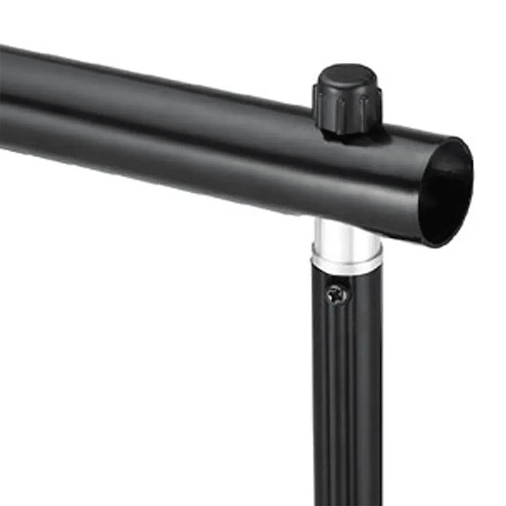 • Paindlik taustasüsteem – teleskoopne must alumiiniumkonstruktsioon reguleeritava põiktala laiusega 155–300 cm ja statiivi kõrgusega 75–210 cm võimaldab tausta kiiresti sobivale laiusele ja kõrgusele seada.