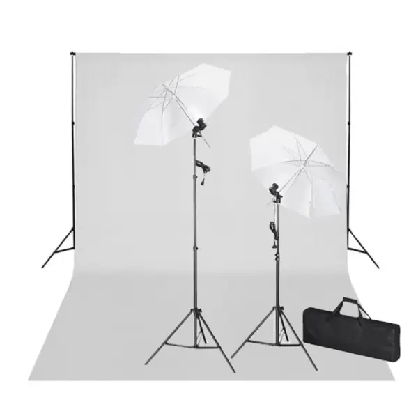 See fotostuudiokomplekt pakub kiiret lahendust nii foto- kui videostuudiotele, kus on vaja ühtlast ja neutraalset tausta. Komplekti kuulub eriti lai 600 x 300 cm valge taust ja kaks päevavalguslampi vihmavarjudega, mis aitavad luua pehme ning hajutatud valguse tootefotode, portreede ja videote jaoks.